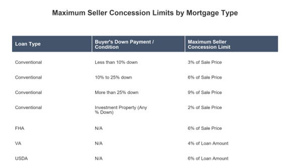 • The seller concession is a key negotiating tool where the seller agrees to pay a portion of the buyer's closing costs, but it is limited by the property's appraised value and the buyer's loan type.